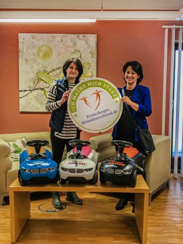 Gestern übergaben unsere Vertriebsassistentin Jeannette Lindner und Geschäftsführungsassistentin Nicole Kornmann dem Kinderhospiz in Tambach-Dietharz eine Spende in Form von drei BMW Bobbycars. Zum ersten Mal unterstützen wir diese Institution, welche tagtäglich wahre Wunder voller Herz und Mitgefühl vollbringt. Wir hoffen, dass diese Sachspende für ordentlich Spaß und freudige Momente bei den Kindern sorgen wird.
